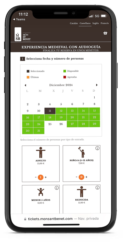 Diseño 100% responsive. Billetes en formato e-wallet. Página marca blanca o integrada directamente en vuestro CMS con nuestra API. Emails de confirmación automatizados.
