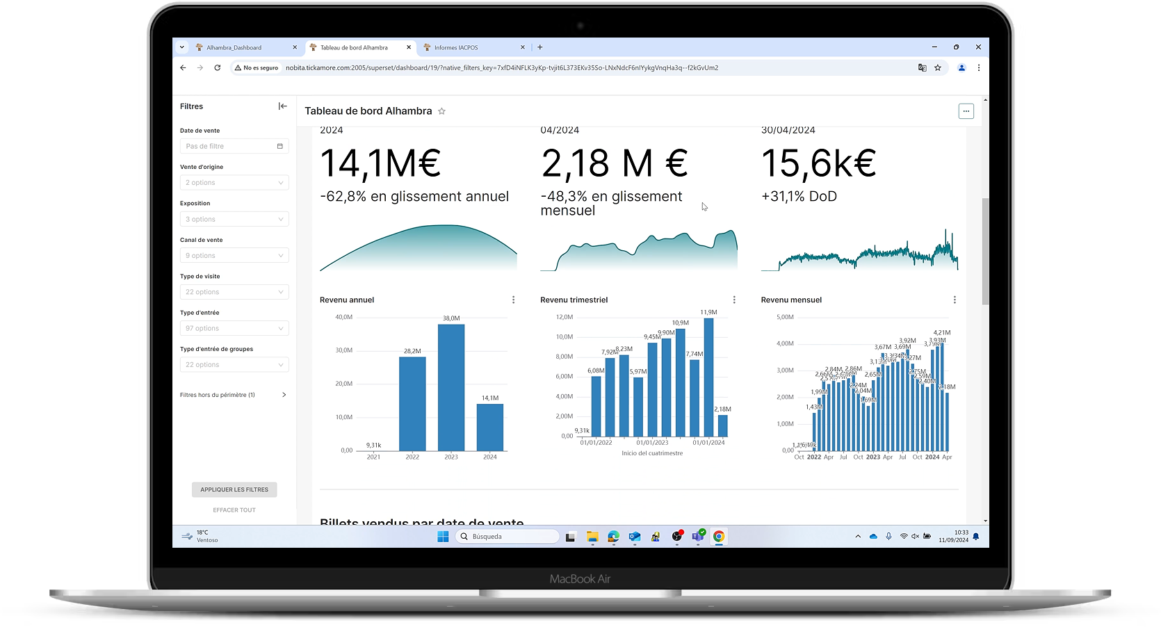Taquilla en la nube. Accede a la interfaz desde cualquier dispositivo con conexión. Modo offline: trabaja en local en caso de pérdida de conexión en la nube.
